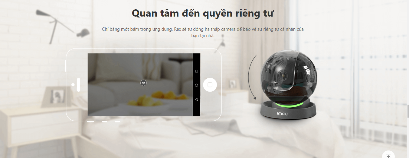 Chỉ bằng một bấm trong ứng dụng, Rex sẽ tự động hạ thấp camera để bảo vệ sự riêng tư cá nhân của bạn tại nhà.