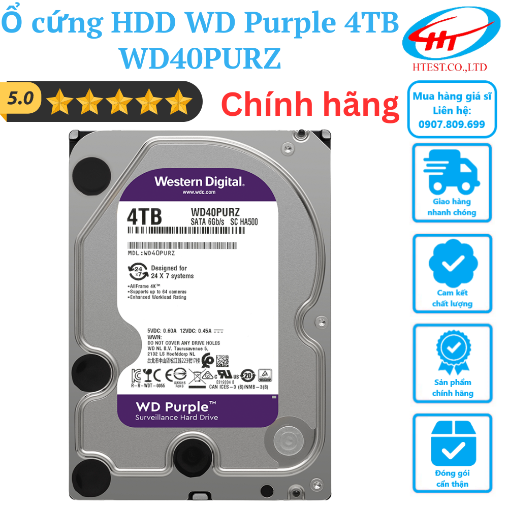 Ổ cứng HDD WD Purple 4TB WD40PURZ – Hàng Chính Hãng