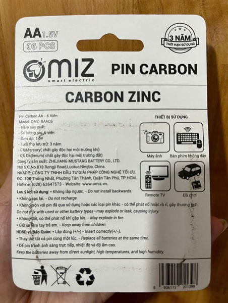 Pin Omiz AA Alkaline Premium | 2A Kiềm cao cấp – 1.5V – Vỉ 6 viên