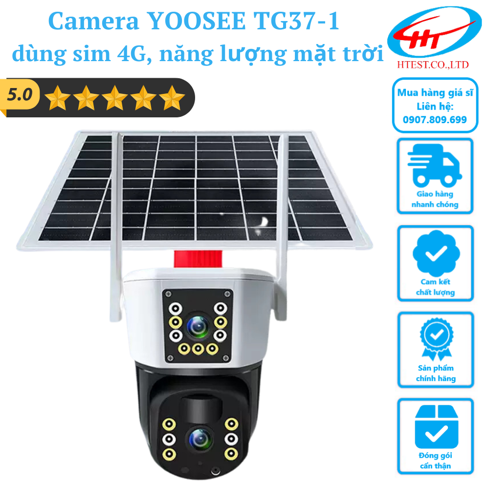Camera ngoài trời YOOSEE TG37 – 1 dùng sim 4G năng lượng mặt trời, 2 ống kính