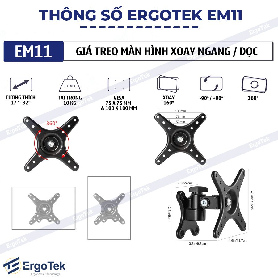 Giá treo màn hình máy tính ErgoTek EM11 14″-27″ inch, xoay 360 độ