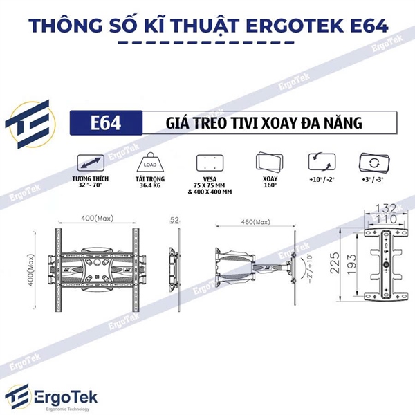 Giá treo TV ErgoTek xoay đa nâng E64 32″-70″ inch