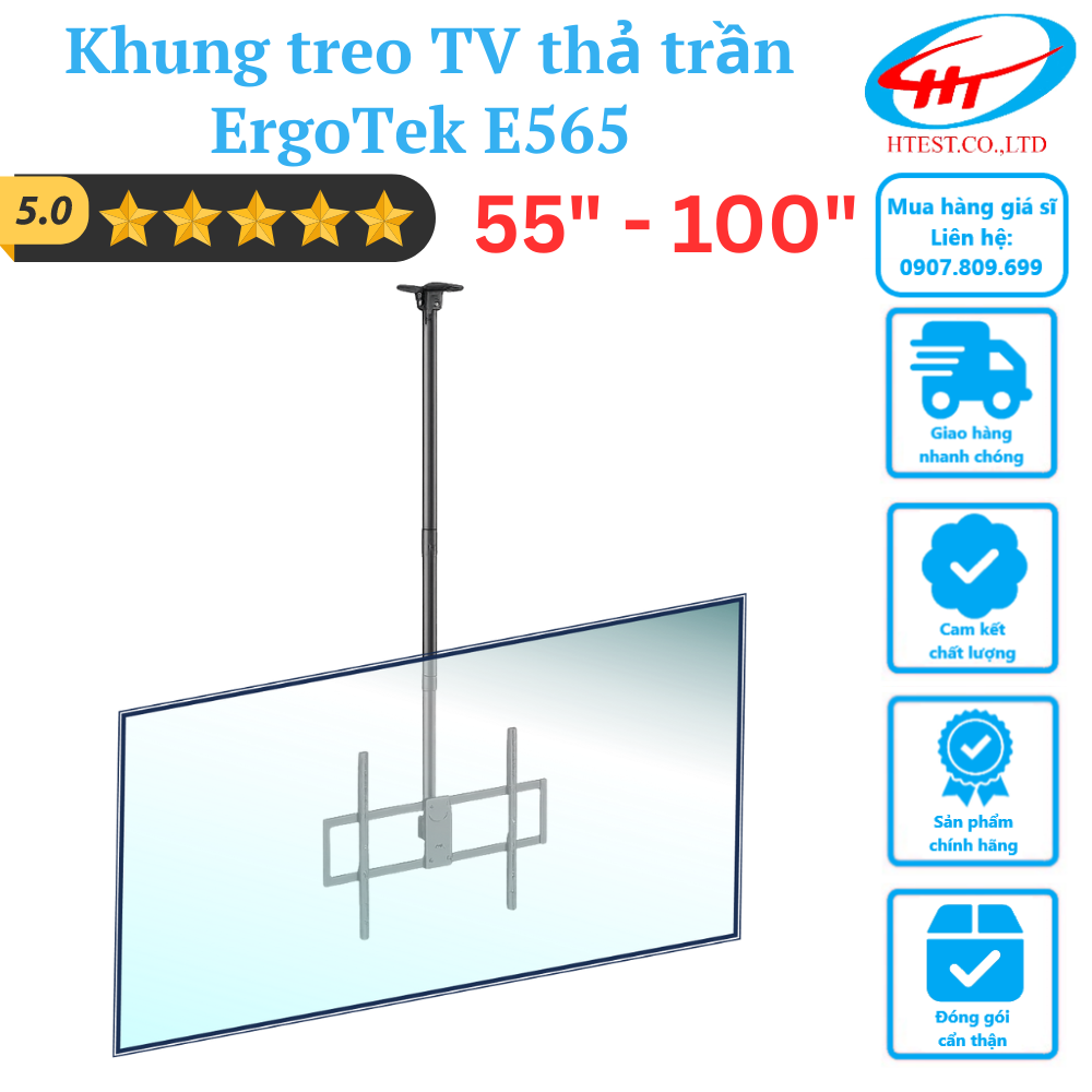 Khung treo TV thả trần ErgoTek E565 55″-100″ – Xoay 360 độ