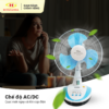 - Quạt sạc 12 inch: 2 tốc độ gió