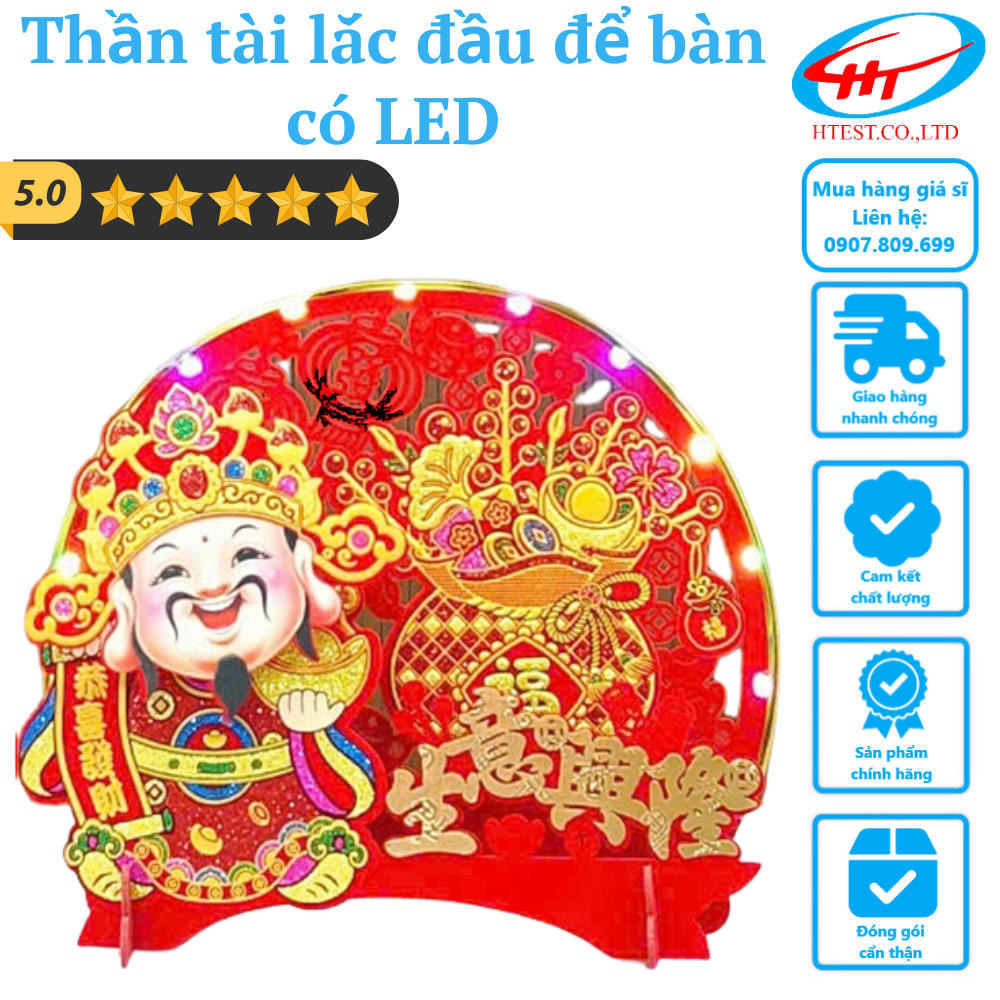 Thần tài lắc đầu để bàn có LED 2025 – Trang trí Tết