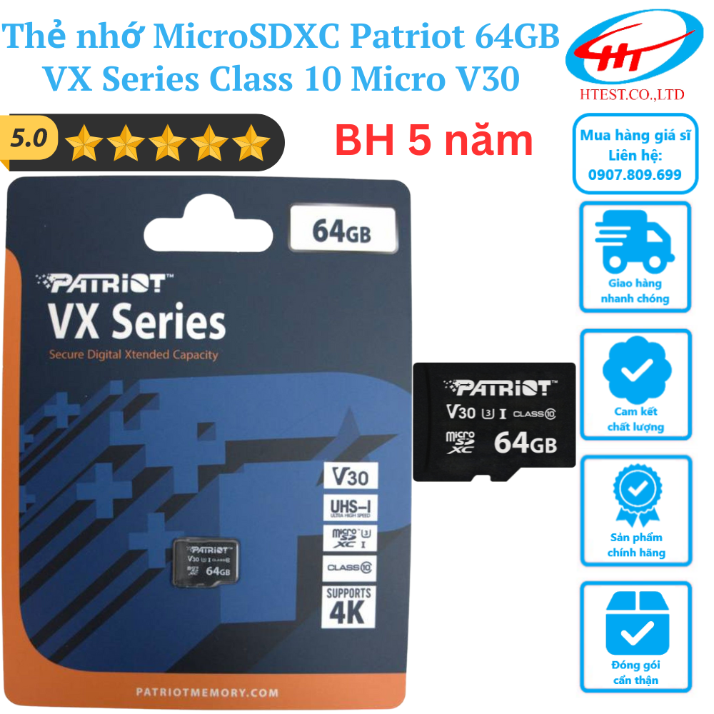 Thẻ nhớ MicroSDXC Patriot 64GB VX Series Class 10 Micro V30 – BH 5 năm