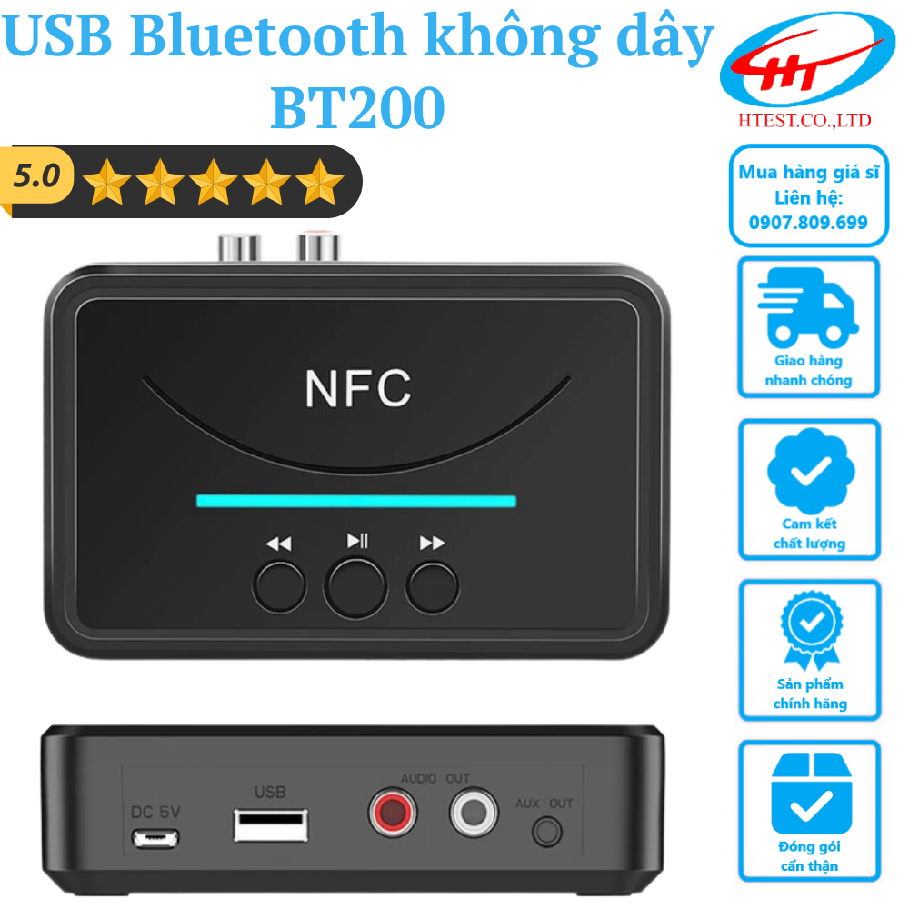 Bộ sản phẩm bao gồm: 1x Bộ thu bluetooth BT200, 1x dây nguồn, 1x dây 2 đầu bông sen, 1x dây 2 đầu 3.5